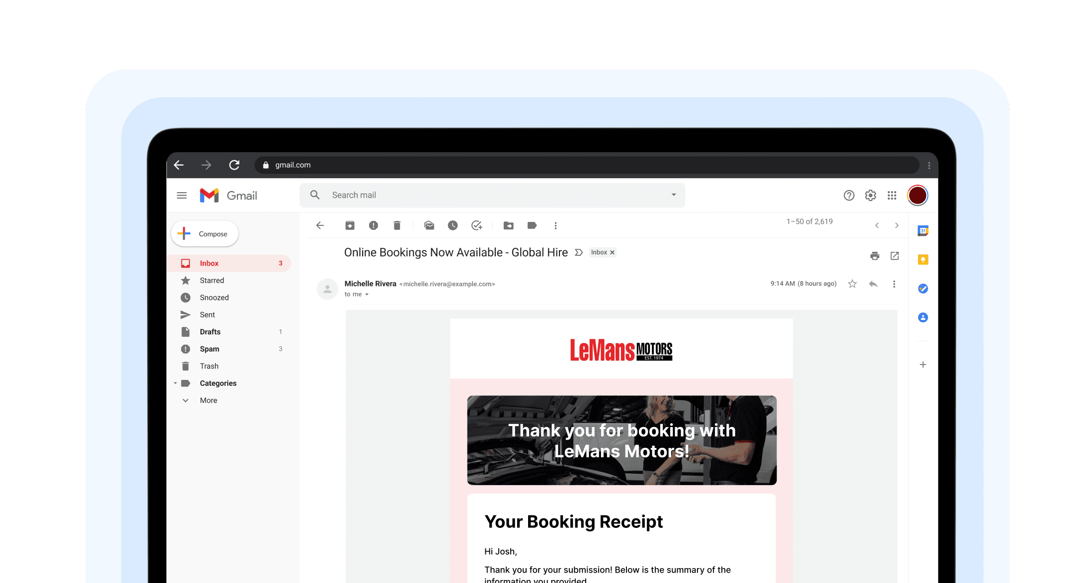 Customers receive automatic confirmation emails the moment they book through the mechanic booking form. Send follow-ups and service reminders automatically, so you can focus on the work.